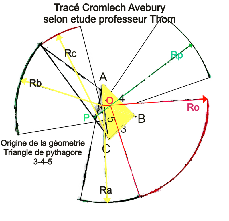 Ainsi comme l’ont prouvé le professeur Alexander Thom , Howard crowhurst , Quentin leplat et d’autres, on trouve a l’origine de la géometrie des cromlech des triangles de pythagore dont en particulier le fameux 3-4-5