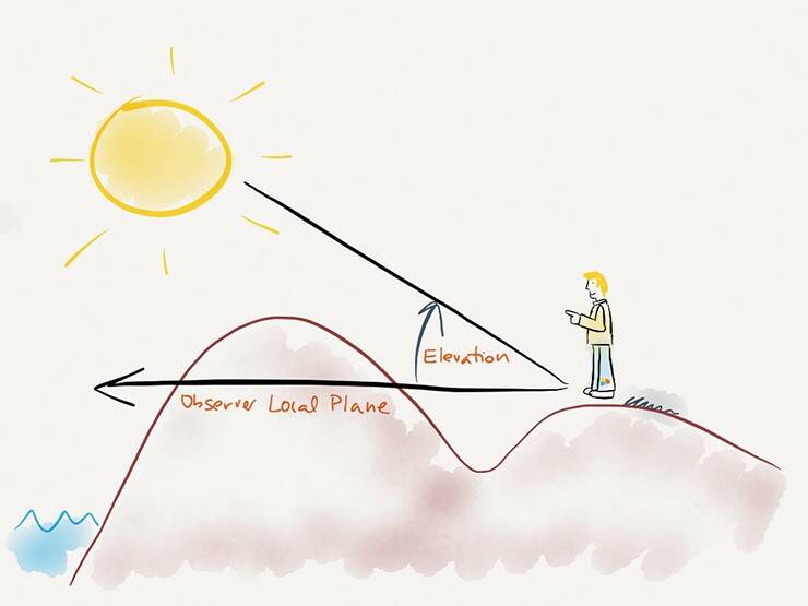 Ensuite il faut comparer les angles obtenus à des angles particuliers pris en azimut par rapport au nord géographique. Mais on peut aussi prendre comme origine l’est ou le Sud ou l’Ouest !